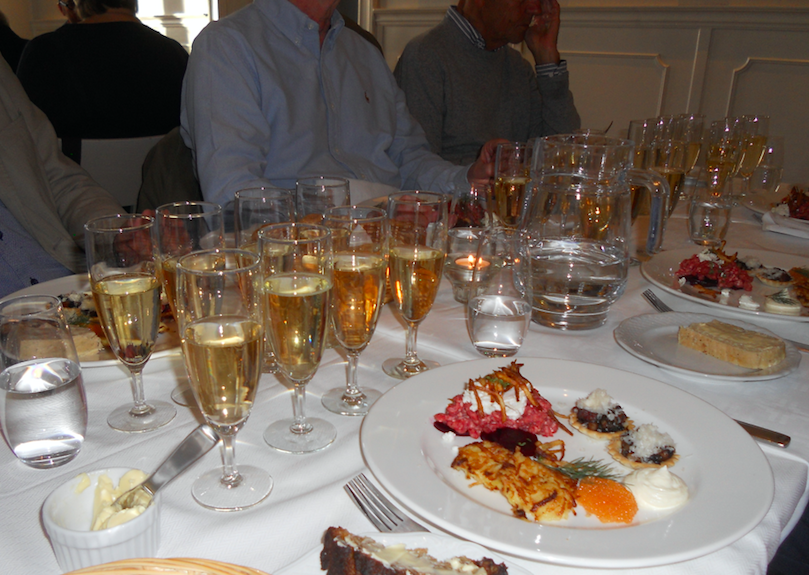 och om champagnens historia. Efteråt gick vi förväntansfulla ned i festvåningen där Frida och medhjälpare