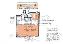 hamnar åt öster mot Betlehemskyrkan. Den tidigare ”sceningången” mot grupprummet breddas och blir en aktiv ingång till salen.